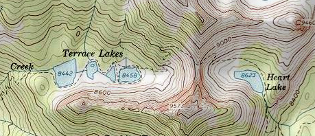 ![]() The very top of the ridge between Terrace and Heart Lakees |