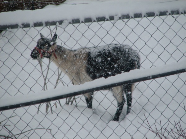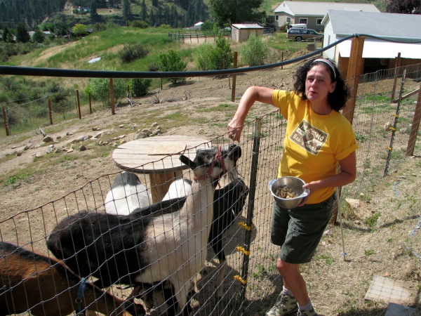 ![]() Mary is doing a photo-op with the goats. Picture later appears in Goat Tracks magazine. |