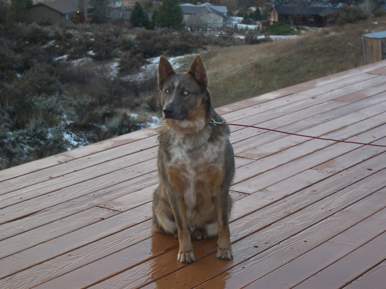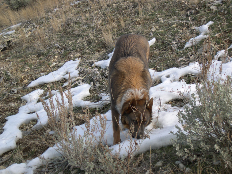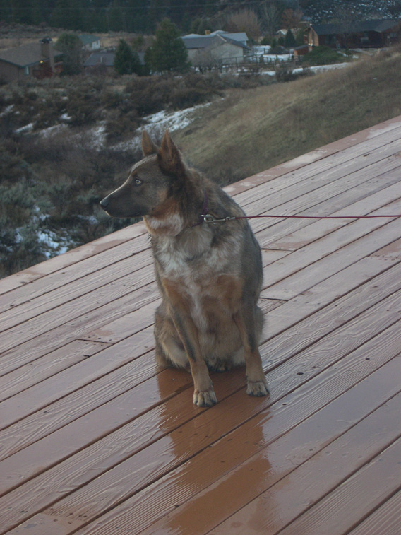![]() Some critter has obviously gained Smoky's undivided attention. |