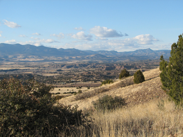 The local area from the hill behind the house. Alma, NM, is more or less in the center of this picture. |