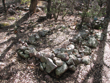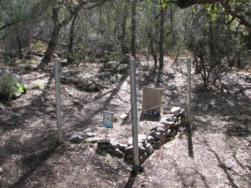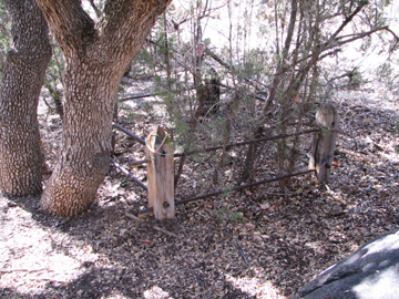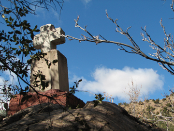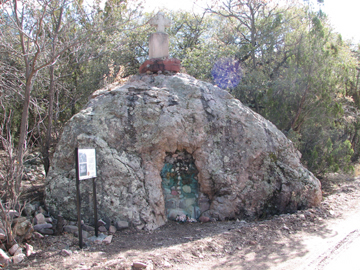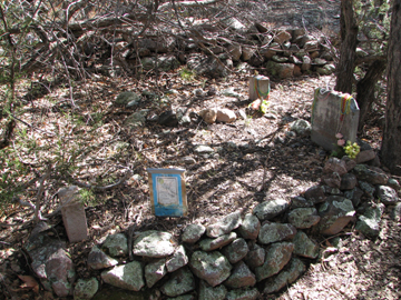 Well, here's a bit of local color up the Mineral Creek road near Alma, NM. Buried in this hollowed-out rock are a couple of miners that were dispatched by the Apache indians around 1880. A more detailed explanation is available at: http://bombaci.rootsweb.com/Catron/cooney.html |