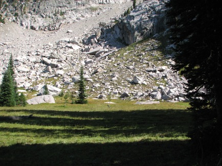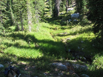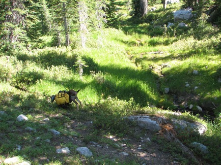 ![]() On the first night out, this served as a camp spot. Not only were the goats showing signs of packing it in, but so was the daylight! |