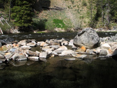 ![]() Bear Valley Creek showing the effects of a high snow year. Usually the area on the right behind the tree stump is grass! |