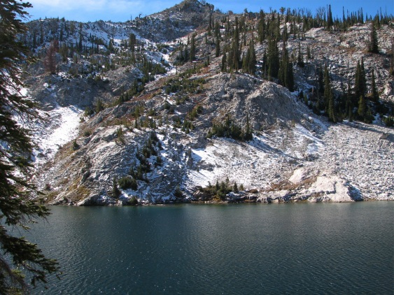 ![]() Looking back down to the lake on the way up to Lake 8350 |