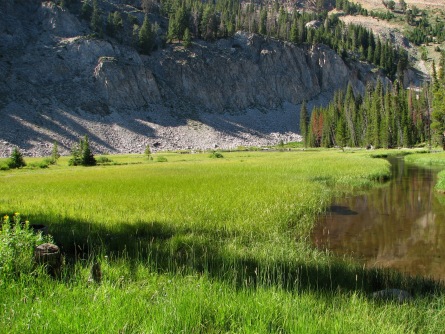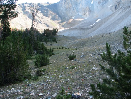 ![]() We came out at one point onto this beautiful, but dry, high meadow. Had there been some water available, I would have spent the night here. |