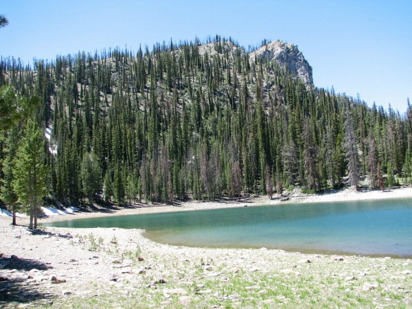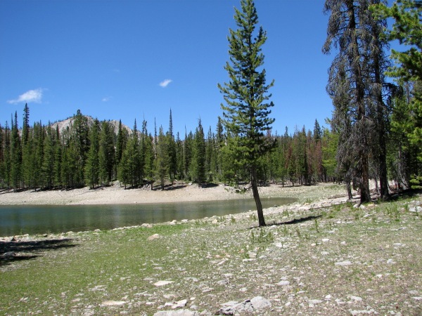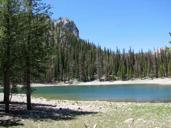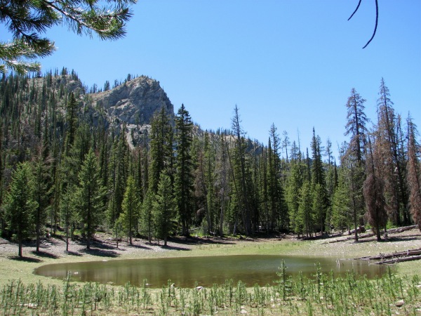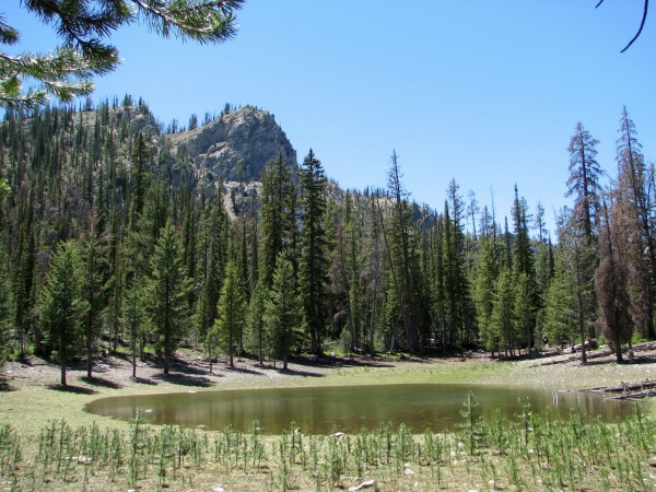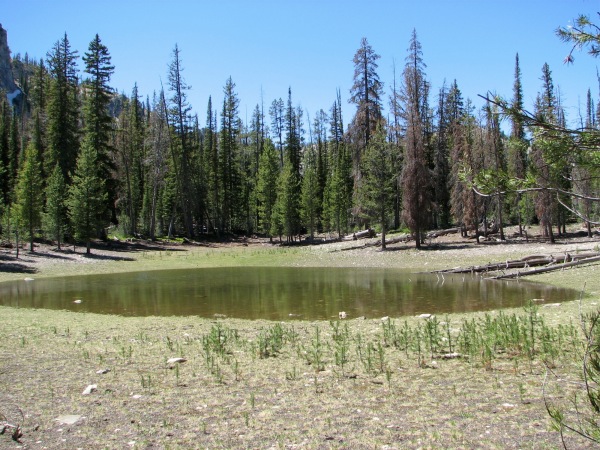 ![]() It is here, because, even at 8000+ feet, this lake had been warmed by the sun to 80-90 degrees, and would have made an excellent bathtub |