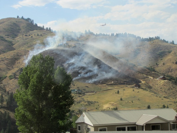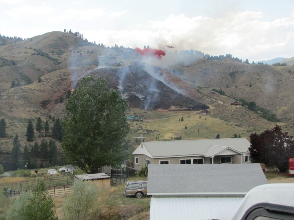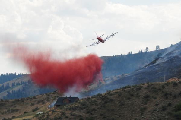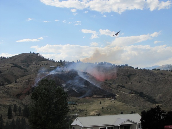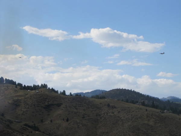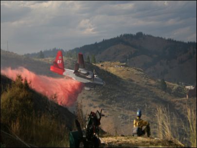 ![]() This is hard to spot, but the Twin (on the extreme left side) is leading the bomber (on the extreme right side) into the slurry drop, which in this case will be on the left side of the fire |