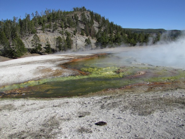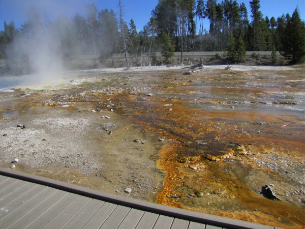 ![]() Output of the Grand Prismatic Spring. The colors are ever-changing, and fascinating beyond words! |