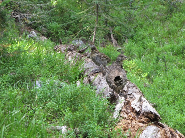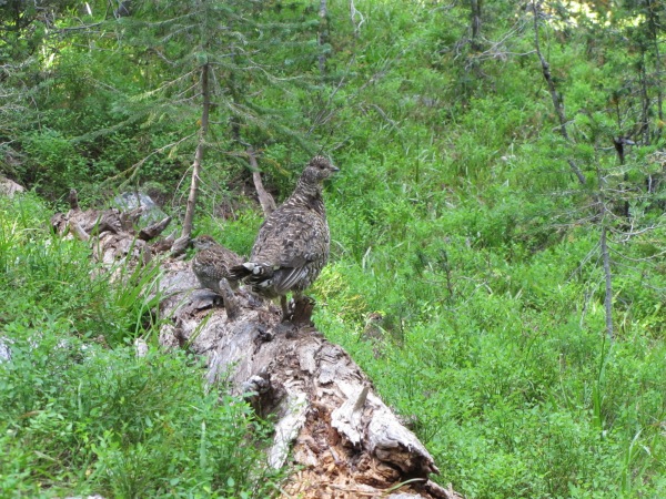 A momma grouse and her progeny.