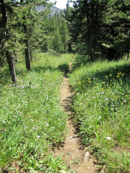![]() Trail from Bernard goes up through a few trees, then to the treeless ridgeline |