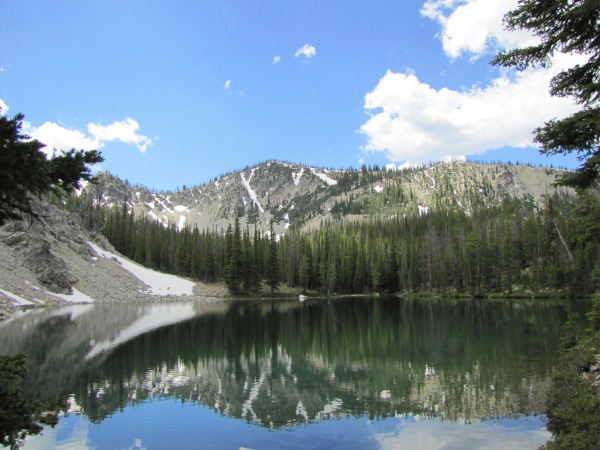 ![]() Lake 8050 actually consists of two lakes, a large and profoundly unphotogenic one, and a small 'tag line lake' on the southwest end. This, the small part, is extremely beautiful with its aqua hue, and the morning reflections. |