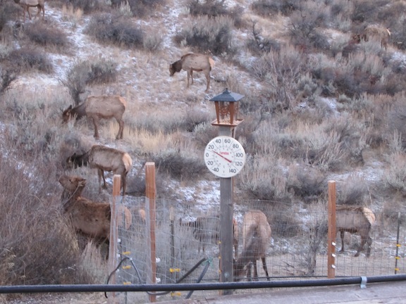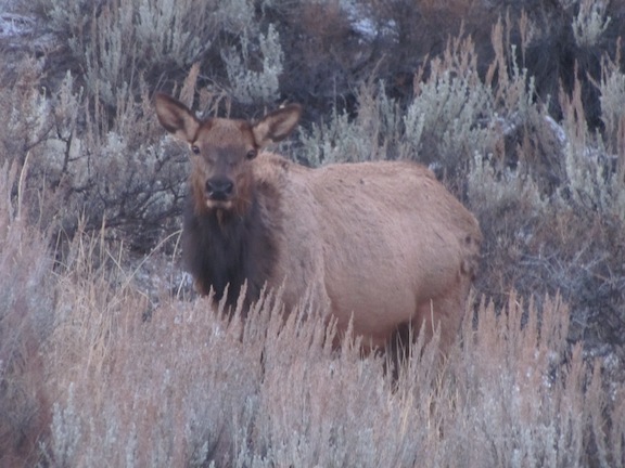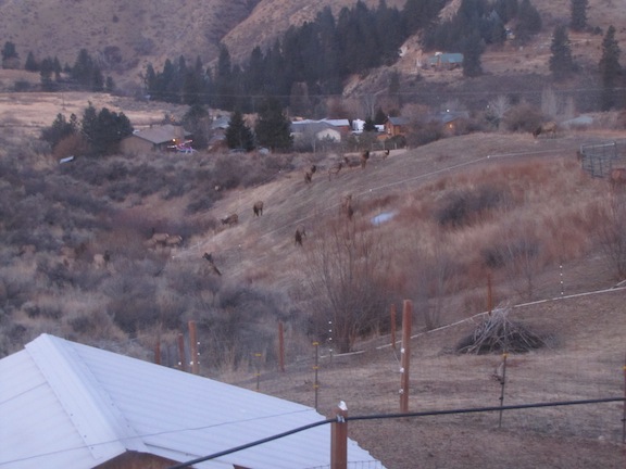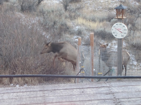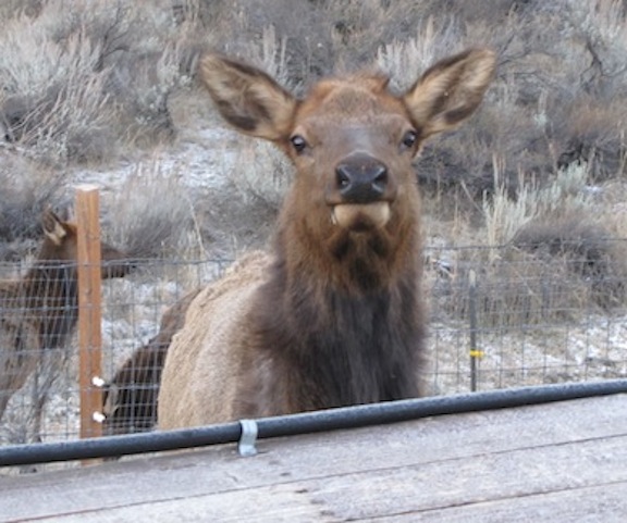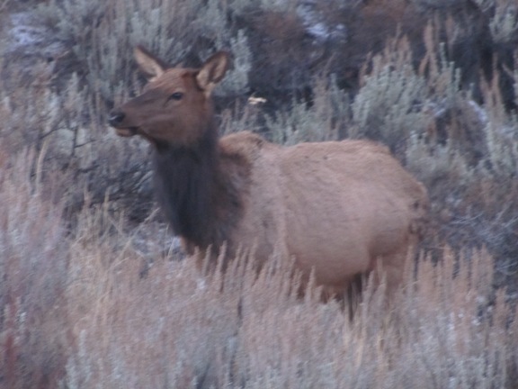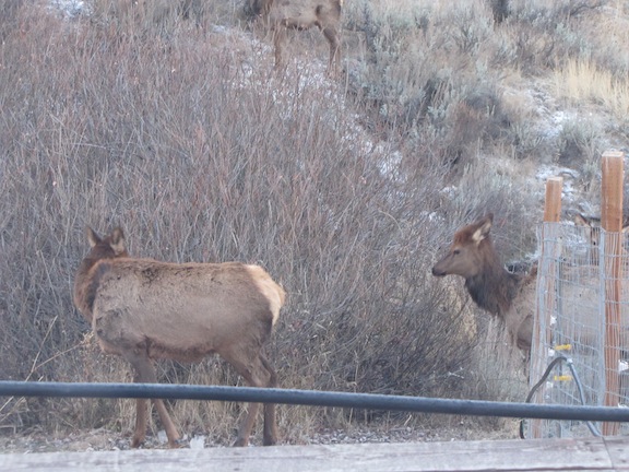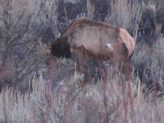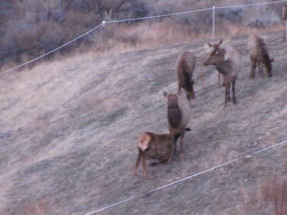 A first, one of the yearlings is still suckling off mom. Not a real good picture, but it was early and the light was not-so-good! |