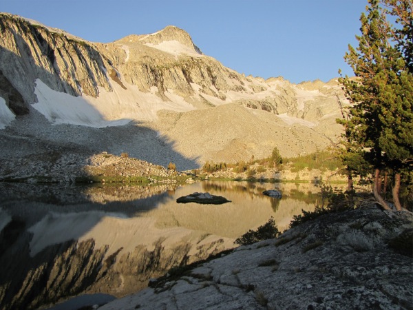 ![]() Looking down at Mirror Lake from Upper Mirror Lake at dusk |