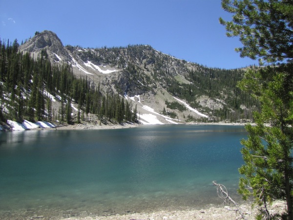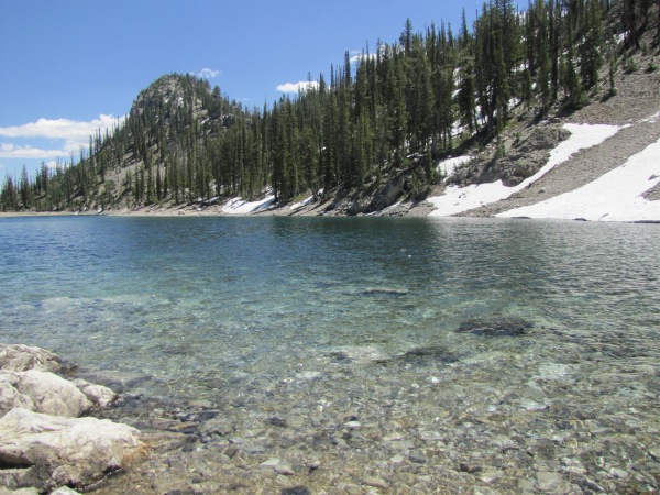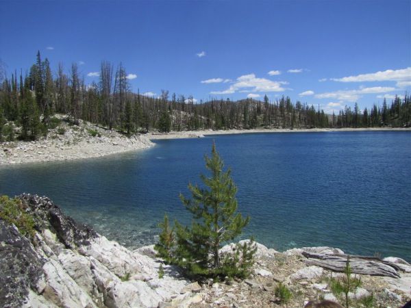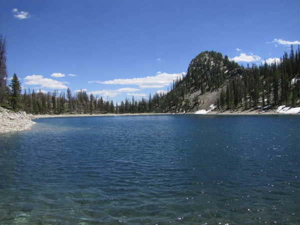 ![]() It is fairly obvious that this lake, Island Lake, is draining out the bottom. As the actual outlet is far above the current waterline. (That became even more obvious during Idaho's 2020 earthquake, as the lake, presumably from the shaking, drained completely into the strata. As of right now, no more lake here.) |