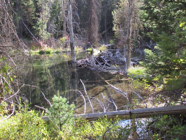 ![]() The beavers had been at work here in a major way. This dam is 100ft plus wide and even had flooded the trail to a degree |