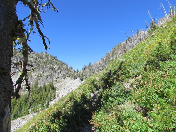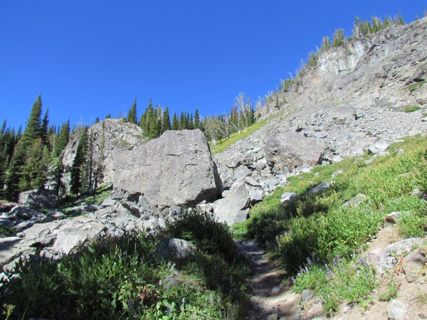 ![]() Slogging up the trail through an incredibly large rockfall |