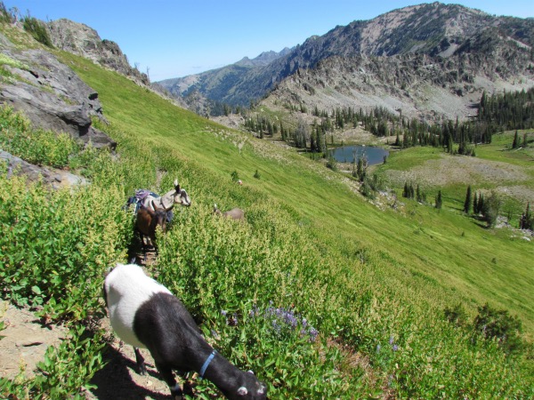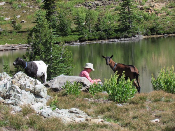 ![]() Hiking partner thought that arriving at this pothole lake was a sufficient excuse to eat something. Of course the goats always agree with that! |