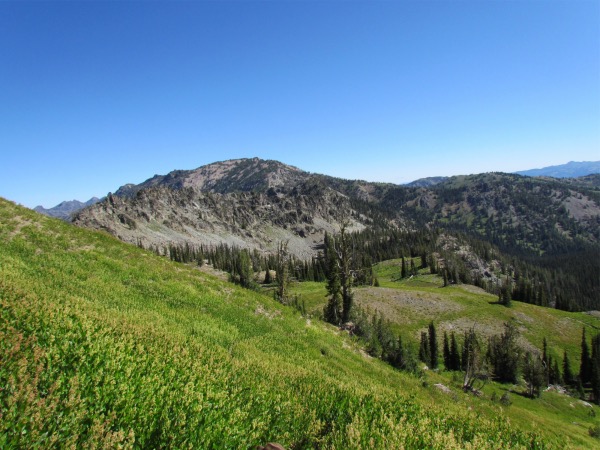 ![]() Climbing up to the top of the first pass. There were two. This one and the other called Joe's Gap, the entry point into the Six Lakes Basin. |