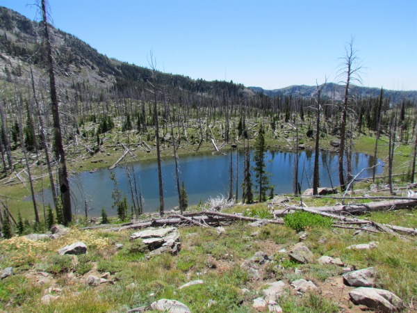 ![]() Lake 6. Appeared to be an excellent fishery. How do I know that? By means of the remains of 4 fish, killed by a less than exemplary fisherman, and left to rot on the bottom of the lake. The carcasses did, however, appear to be very good-sized boys, which indicated some potential for future fishermen/ladies. |