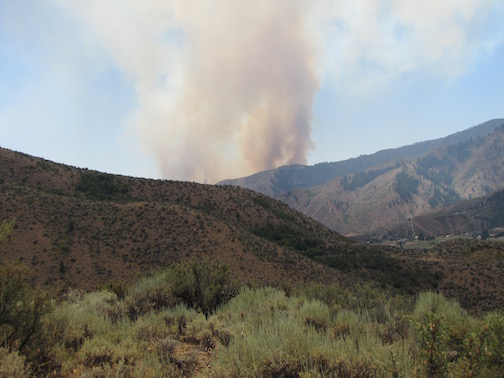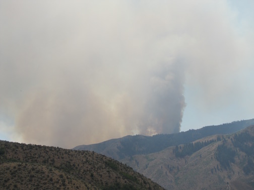 ![]() Here's the 'bucket boy' on his way over my position (on top of the hill) coming down from the firefighter base at McCall, ID |