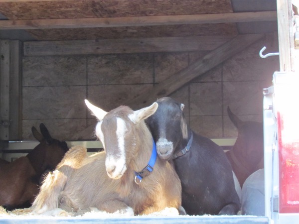 The boys, as is normal after they have been worked to death, choose to veg in the back of the pickup. In point of fact, they were eating all the way out along the trail, so couldn't