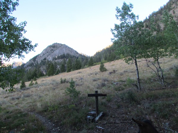 ![]() No one is buried here. :-) That is actually the trail marker for the Mattingly Creek trail which goes up the divide/drainage to the right. |