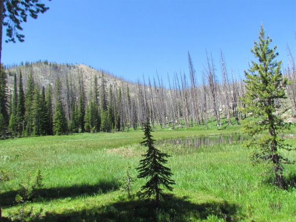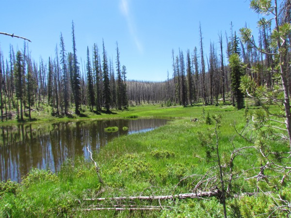 ![]() The road we were hiking crossed an area that was replete with lakes, potholes, and meadows that we previously lakes, or lakes that were still in transition |