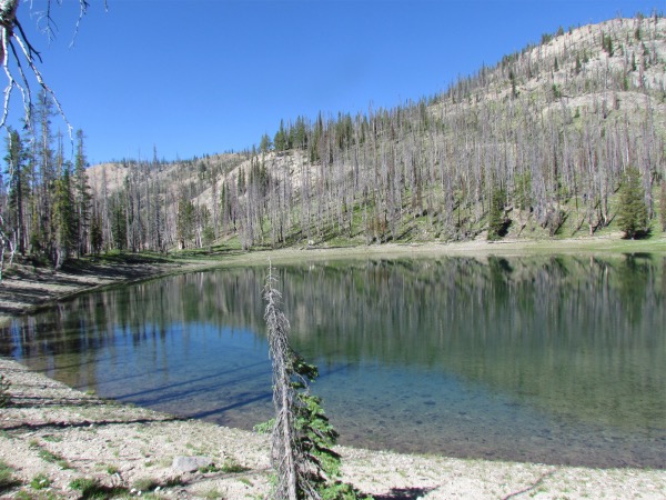 Lake #1 - 44.40524N, 114.92221W![]() This lake, like several I have seen in Idaho, is draining out the bottom. No outlet visible |