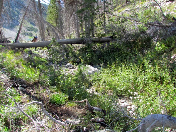 ![]() Island Lake, like some others I have seen, is apparently draining out the bottom of the lake through the talus, as it definitely has an 'outlet' of sorts, but it is high above the waterline, and only functional during the periods of the highest water. |