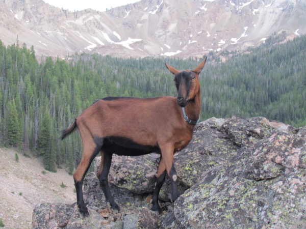 ![]() Looking back on the way up the drainage. George the goat is lollygagging as usual! |