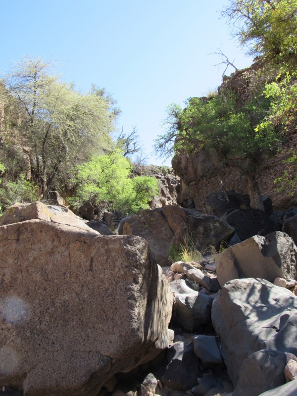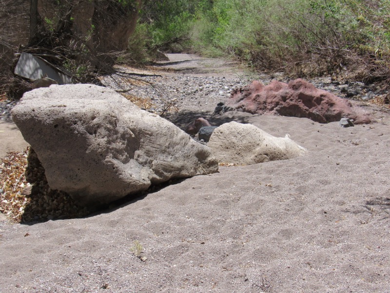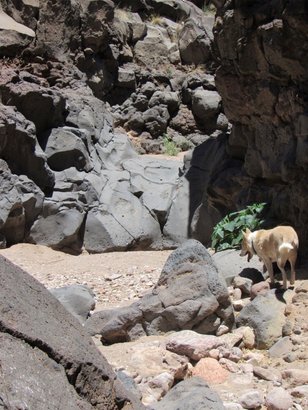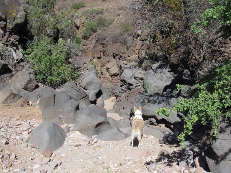 itself until after we had started back down the drainage, and noticed the dog dancing around on the sand, and realized that the sand and rocks were hot enough to be painful