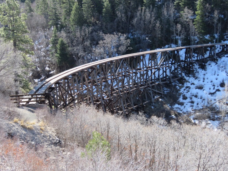 A train trestle dating from bygone years. Not sure why it was rebuilt when you are not allowed to walk on it
